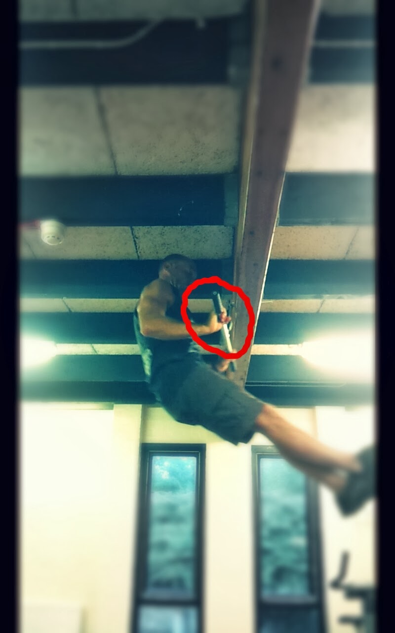A note on wrist position: If you have followed this progression so far, it is possible that your wrist at the top of the movement on belly button pull-ups, is still underneath the bar (look at the kink in my wrist in the picture alongside).