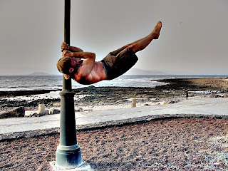 working out on the beach or on an outdoor pull up bar in the midst of the