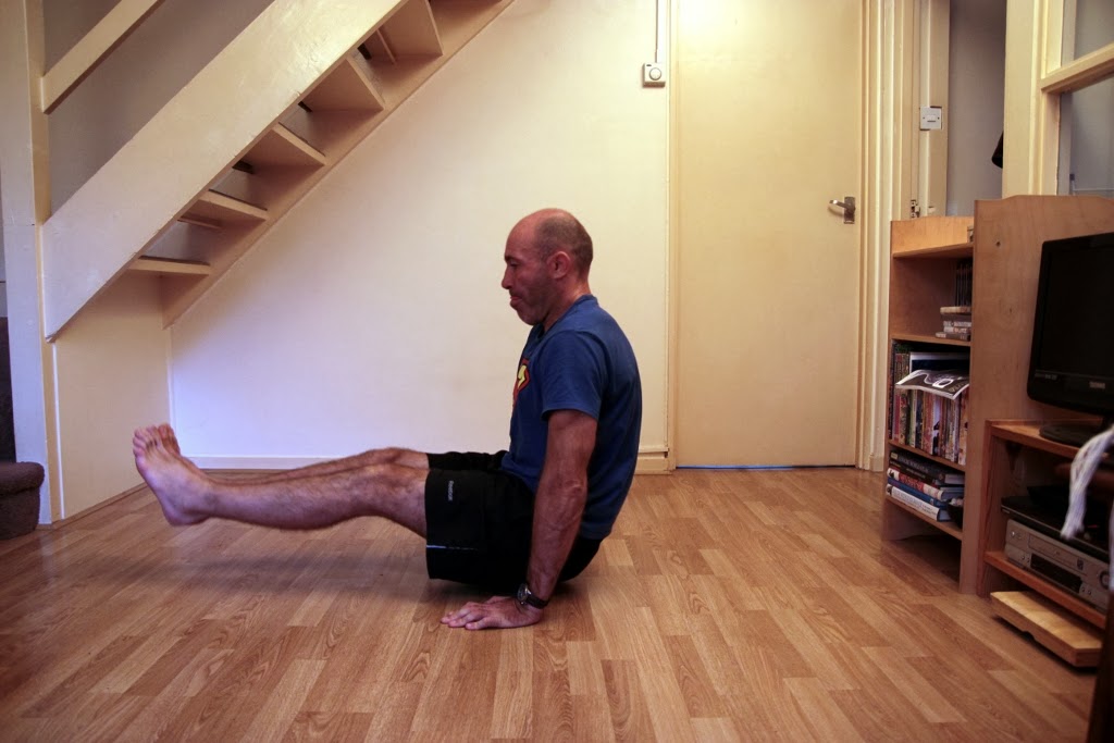The L-sit (a.k.a. floor L-sit) is a core exercise which places quite a lot of stress not only on your core muscles, but also -isometrically- on your hip flexors and on your triceps. It is a good idea to follow a progression in order to build up to the full exercise.