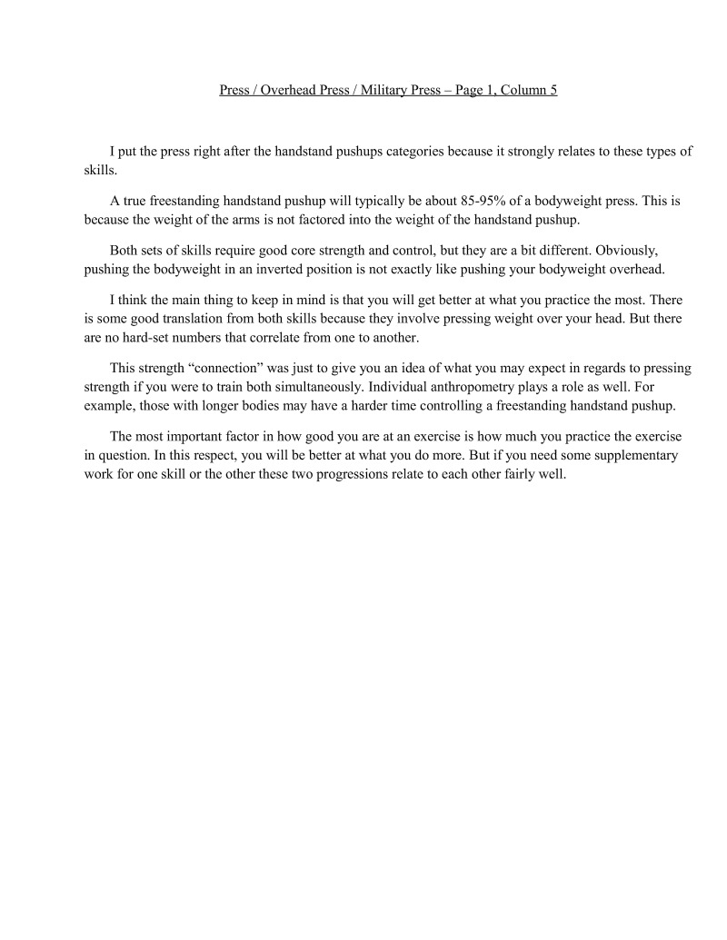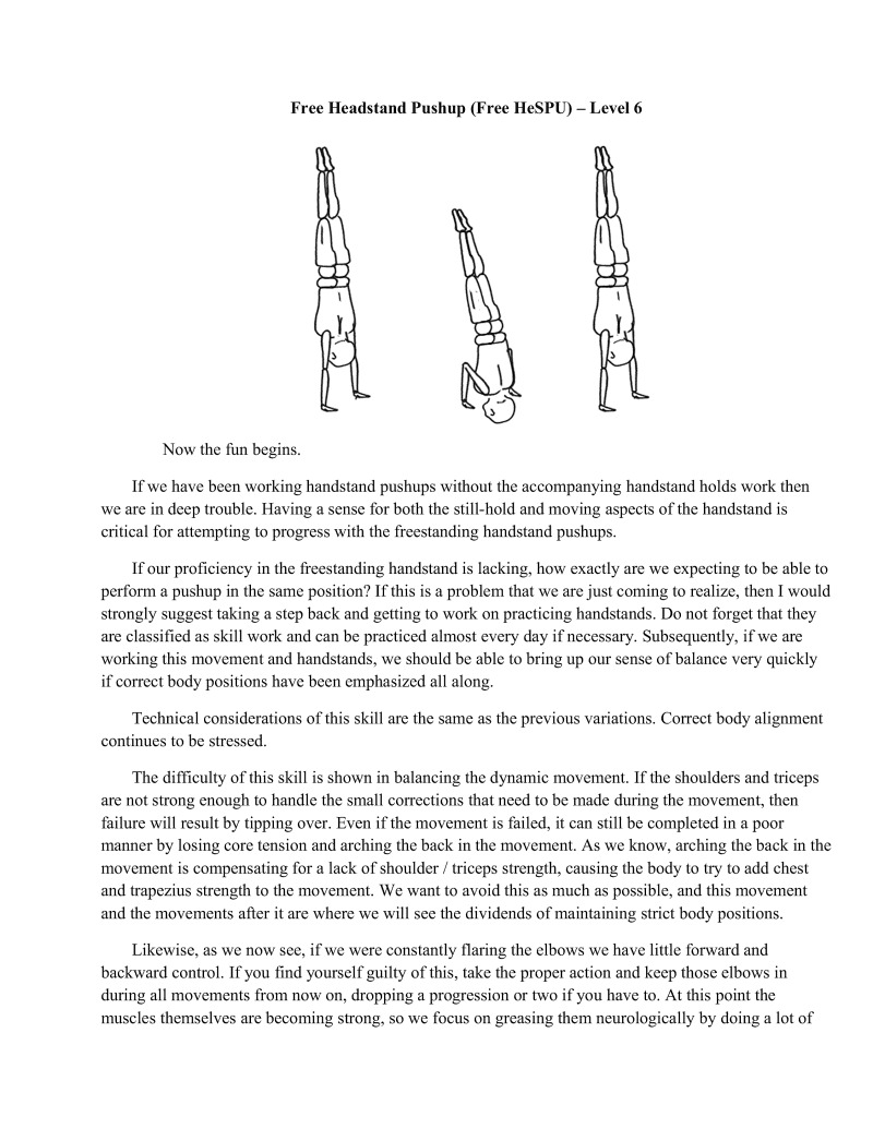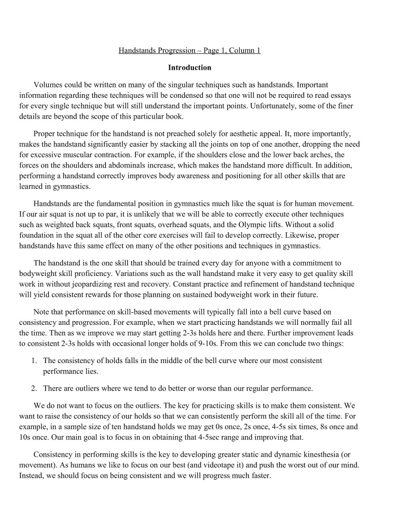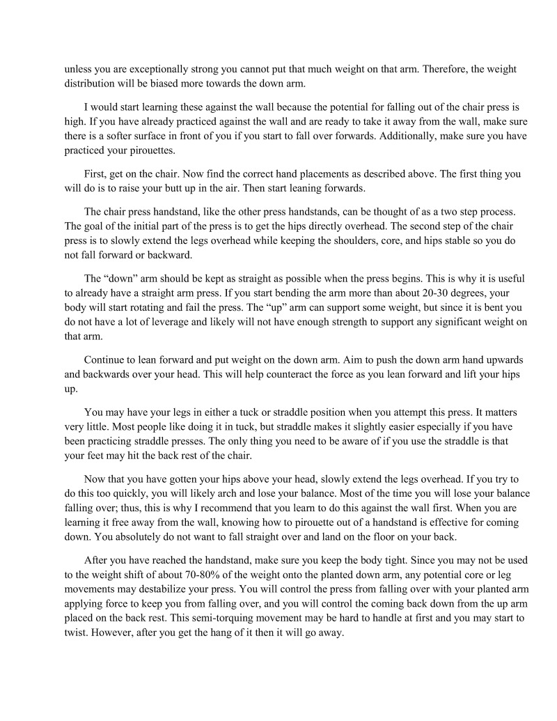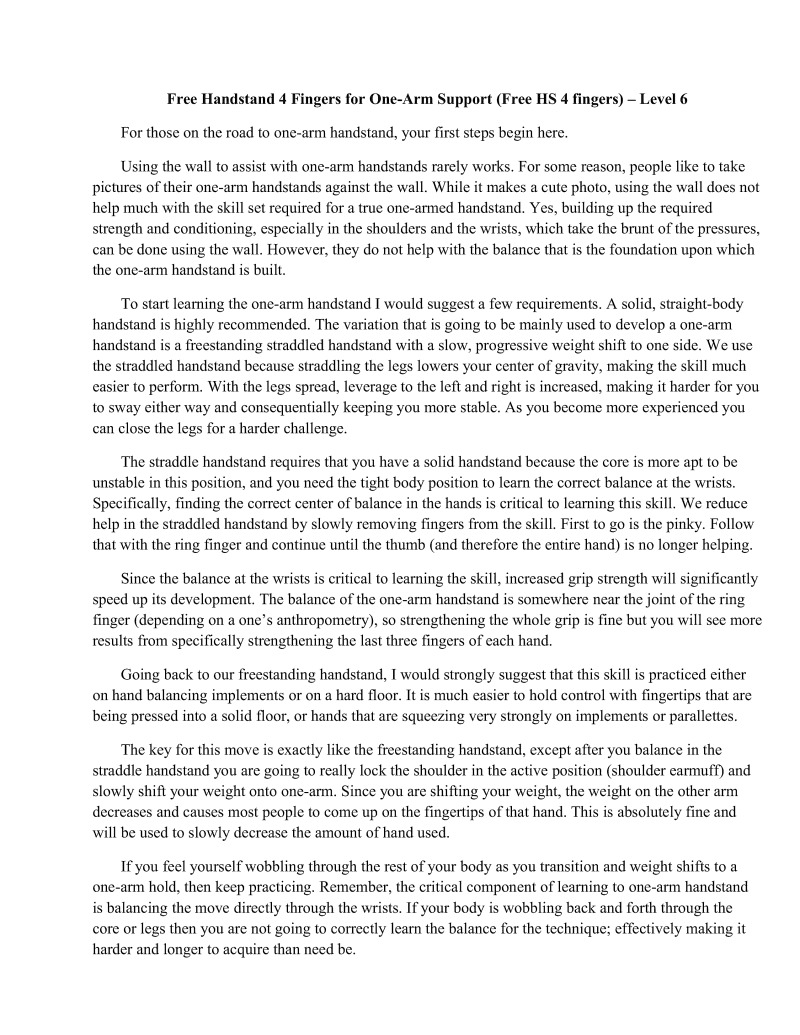 Volumes could be writien on many of the singular techniques such as handstands. Important information regarding these techniques will be condensed so that one will not be required to read essays for every single technique but will still understand the important points. Unfortunately, some of the finer details are beyond the scope of this particular book.
