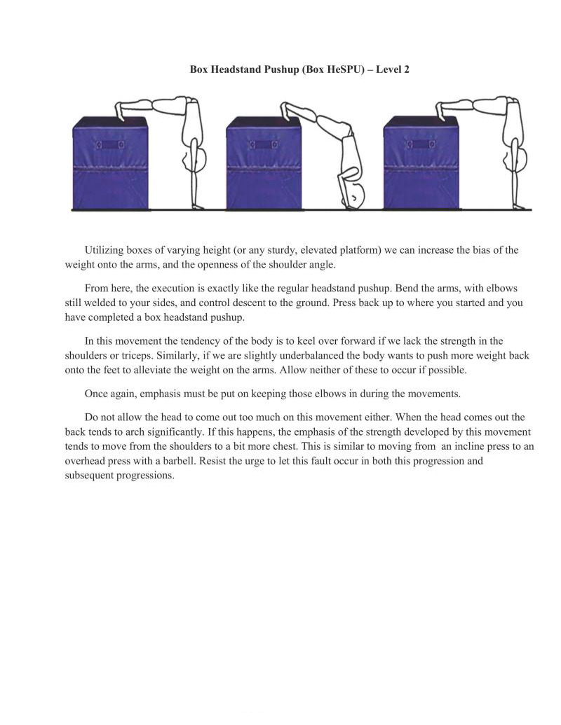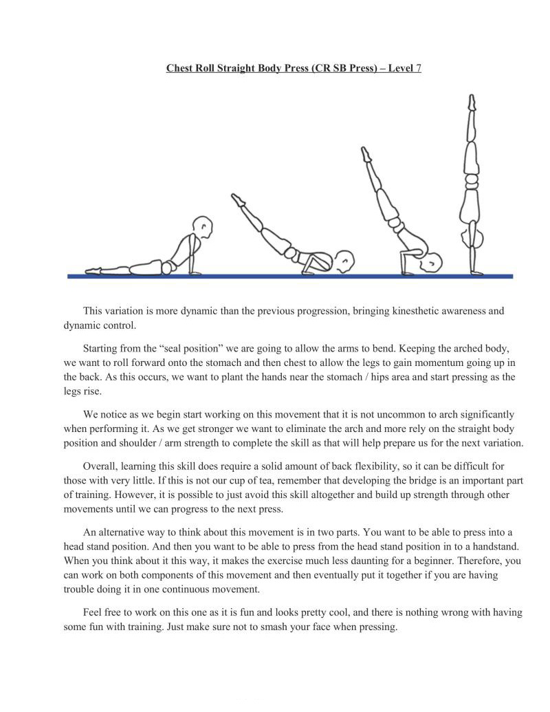 This movement is not on the charts, but is included here for completeness. While it has its uses, the same body positions can be built more thoroughly doing a correct wall handstand.
