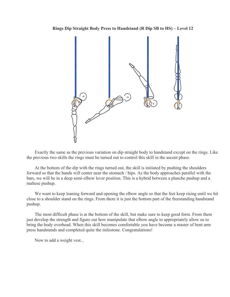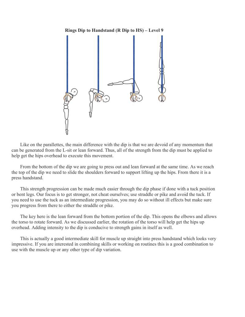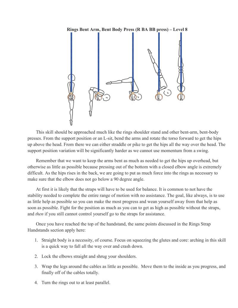 Taking these skills to the rings represents a big jump in difficulty. Typically we should have already worked variations of rings bent arm press handstands and rings handstands to be at this level of strength and balance.