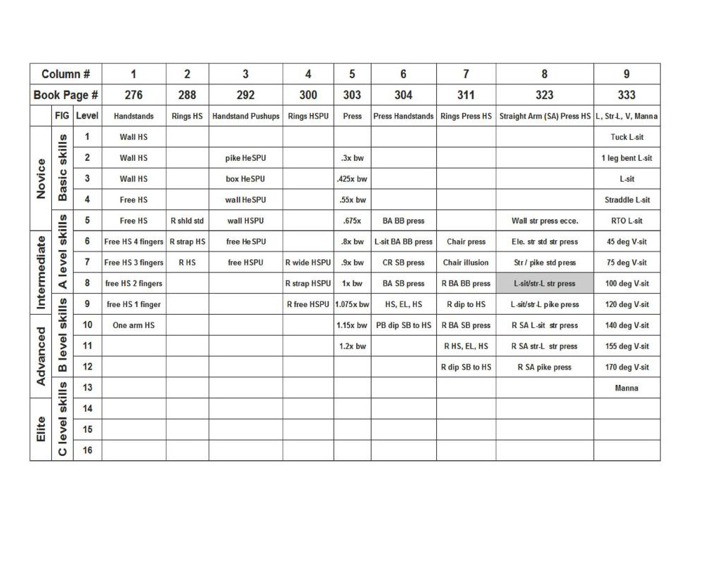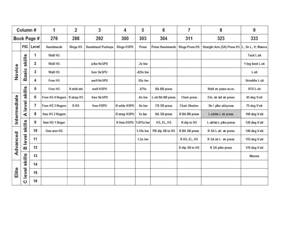 Select your goals. Refine your goals to 1-2 each of skill work, push, pull, and legs.