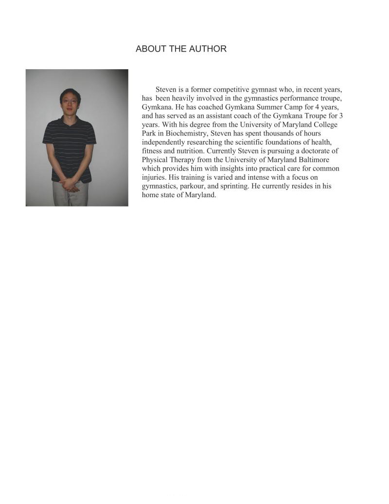 Steven is a former competitive gymnast who, in recent years, has been heavily involved in the gymnastics performance troupe, Gymkana. He has coached Gymkana Summer Camp for 4 years, and has served as an assistant coach of the Gymkana Troupe for 3 years. With his degree from the University of Maryland College Park in Biochemistry, Steven has spent thousands of hours independently researching the scientific foundations of health, fitness and nutrition. Currently Steven is pursuing a doctorate of Physical Therapy from the University of Maryland Baltimore which provides him with insights into practical care for common injuries. His training is varied and intense with a focus on gymnastics, parkour, and sprinting. He currently resides in his home state of Maryland.
