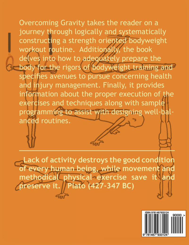 Overcoming Gravity takes the reader on a journey trough logically and systematically constructing a strength oriented bodyweight workout routine. Additionally, the book delves into how to adequately prepare the body for the rigors of bodyweight training and specifies avenues to pursue concerning health and injury management. Finally, it provides information about the proper execution of the exercises and techniques along with sample programming to assist with designing well-bal- anced routines.