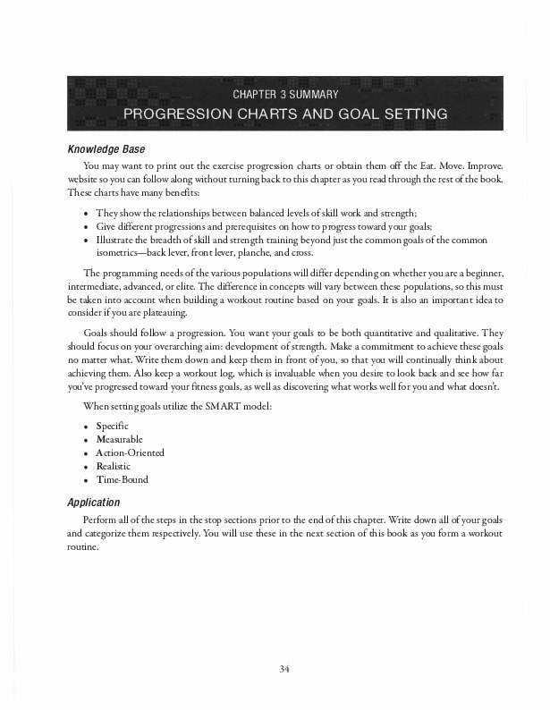 You may want to print out the exercise progression charts or obtain them off the Eat. Move. Improve. website so you can follow along without turning back to this chapter as you read through the rest of the book.